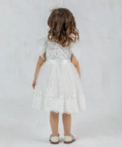 Designer’s Cat – Ρομαντικό δαντελένιο φόρεμα με φούστα από τούλι με κεντημένα πουά. Καταπληκτικά μανίκια με βολάν και εντυπωσιακό δαντελένιο μπούστο από εξαιρετική γαλλική δαντέλα διακοσμημένο με ασορτί σατέν ζώνη. Η εσωτερική επένδυση είναι 100% βαμβάκι. Ένα φόρεμα εξαιρετικής αισθητικής για ιδιαίτερες περιστάσεις.