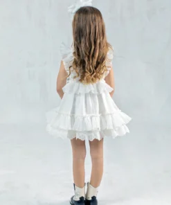 Κοντό φόρεμα βάπτισης με δαντέλα και βολάν – GRETA
