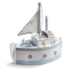 Ξύλινο natural καράβι,συσκευασία βάπτισης ζωγραφισμένη στο χέρι σε πειρατικό στυλ με λευκά-καφέ σβησίματα.Το πάνω μέρος του καραβιού διακοσμείται με ξύλινη παράσταση πειρατή και με κορδόνια λευκά-τιρκουάζ και κόκκινα.