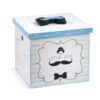 Ξύλινο λευκό καράβι, συσκευασία βάπτισης στολισμένη με ύφασμα ριγέ σιέλ και διακοσμημένη με καραβάκια, κοχύλια και αστερίες.