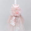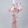 Λαμπάδα βάφτισης με μονόγραμμα της επιλογής σας,πλαισιώνεται με χειροποίητα λουλούδια,  κιπούρ δαντέλα σε χρώμα σάπιο μήλο.