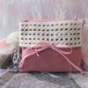 Μπομπονιέρα βάφτισης φάκελος floral δεμένο περίτεχνα με δαντέλα και ροζ λουλούδια.