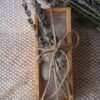 Ξύλινο κουτάκι στολισμένο με αμάραντο αποξηραμένο,δίνει στο γάμο σας boho στιλ.( το χρώμα στον αμάραντο είναι της επιλογή σας)