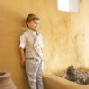 Ένα άκρως καλοκαιρινό σέτ Baby Bloom της συλλογής stile di vita mediterraneo 2024 αποτελούμενο από 4 τεμάχια. Περιλαμβάνει παντελόνι σε μπέζ απόχρωση ,πουκάμισο οff white με ιδιαίτερο print ,ζώνη και ψάθινο καπέλο ή μπερές.