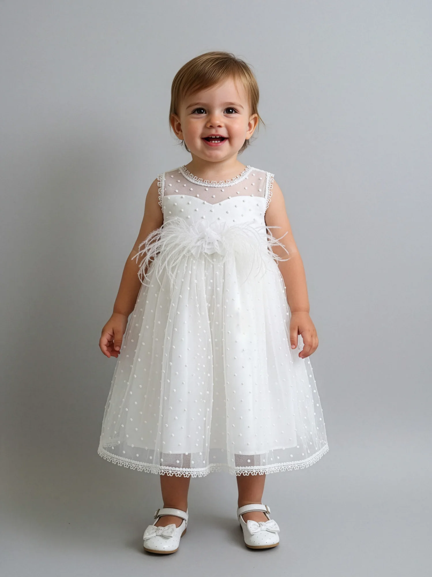 Φόρεμα Βάπτισης με κεντημένο πουα και φτερά – NAZAR