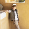 Σετ βάπτισης Baby Bloom της συλλογής stile di vita mediterraneo 2024,ένα κομψό μοντέρνο σετ που αποτελείται από παντελόνι χακί βαμβακερή καπαρντίνα ,πουκάμισο λευκό βαμβακερό και γιλέκο λινό σε απόχρωση μπεζ με διχρωμία στην πλάτη χακί και ιδιαίτερο στολισμό και κούμπωμα. Στο σετ περιλαμβάνονται επίσης τιράντες και ψάθινο καπέλο ή μπερές.