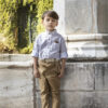 Σετ βάπτισης Baby Bloom της συλλογής stile di vita mediterraneo 2024,ένα κομψό μοντέρνο σετ βάπτισης που αποτελείται από σιέλ καπαρντίνα παντελόνι,πουκάμισο λευκό βαμβακερό,γιλέκο σε απόχρωση μπεζ της άμμου με ιδιαίτερο στόλισμα και κούμπωμα. Στο σετ περιλαμβάνονται επίσης ζώνη και ψάθινο καπέλο ή μπερές.