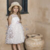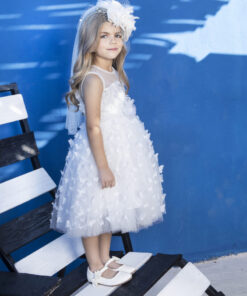 Μοναδικό φόρεμα βάπτισης Baby Βloom της συλλογής stile di vita mediterraneo 2024 σε λευκή απόχρωση με διαφάνεια στο μπούστο και τούλι κεντητό με πεταλούδες σε όλη την επιφάνεια του φορέματος. Εσωτερικά υπάρχει κεντητό τούλι πουά και μαλακό βαμβακερό ύφασμα. Την μέση του φορέματος αναδεικνύει η τούλινη ζώνη που δένει στο πίσω μέρος και το χειροποίητο λευκό λουλούδι που την στολίζει.