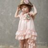 Ρομαντικό βαμβακερό λαδόπανο για κορίτσι  με εκρού χειροποίητα λουλούδια και άλλα στοιχεία.