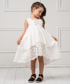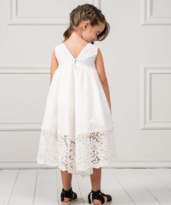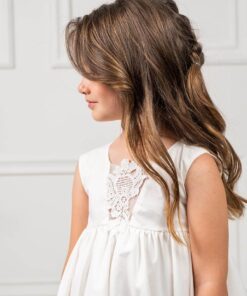 Φόρεμα σε γραμμή Boho, κατασκευασμένο από εξαιρετικό βαμβακερό σατέν ύφασμα διακοσμημένο με εντυπωσιακή Γαλλική Kippur δαντέλα. Ένα κομψό και όμορφο φόρεμα για ειδικές περιστάσεις. Η εσωτερική επένδυση είναι 100% βαμβάκι. Το φόρεμα Aspen μπορείνα συνδυαστεί με αντίστοιχη κορδέλα για τα μαλλιά και παπούτσια από τη συλλογή “Designer’s Cat Shoes”. Διαθέσιμα μεγέθη: από 1 έως 12 ετών. Χρώμα:off white