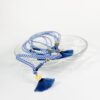 με δίχρωμη άσπρη|μπλε τρέσα και επιχρυσωμένο κολλητό σταυρό.