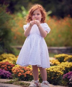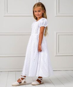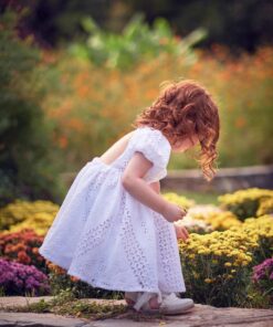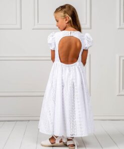 Χαριτωμένο φόρεμα σε στυλ Boho, από εξαιρετικό κεντητό βαμβακερό ύφασμα. Το φόρεμα είναι διακοσμημένο με βολάν στα μανίκια και υπέροχη πλάτη. Η εσωτερική επένδυση είναι 100% βαμβάκι. Το φόρεμα Gianna μπορεί να συνδυαστεί με αντίστοιχη κορδέλα για τα μαλλιά και παπούτσια από την συλλογή “Designer’s Cat Shoes”.Διαθέσιμα μεγέθη: από 1 έως 12 ετών. Χρώμα: Λευκό