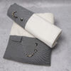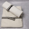Βαμβακερά λαδόπανα σε ιβουάρ χρώμα με διπλή τρέσα χακί. Τα λαδόπανα περιλαμβάνουν μεγάλη πετσέτα και σεντόνι , πετσέτα μικρη και εσώρουχα .