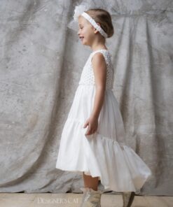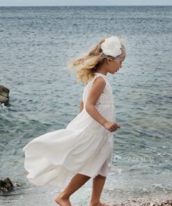 Κομψό σύνολο (φόρεμα & top), από εξαιρετικό σύμμικτο ύφασμα (βαμβάκι και λινό). Το top είναι διακοσμημένο με υπέροχη kippur Γαλλική δαντέλα 100% βαμβάκι. Εσωτερικά είναι επενδυμένο με 100% βαμβακερό ύφασμα. Το σύνολο Livia μπορεί να συνδυαστεί με αντίστοιχη κορδέλα για τα μαλλιά .