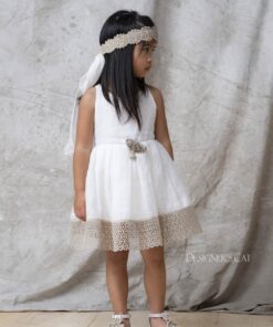 Δροσερό φόρεμα σε γραμμή Άλφα από 100% Λινό ύφασμα διακοσμημένο με υπέροχη λινή δαντέλα στην φούστα και στην πλάτη σε απόχρωση του beige sand. Ένα σύνολο για ξεχωριστές και αέρινες εμφανίσεις . Το φόρεμα NAXOS συνδυάζεται με extra ασορτί κορδέλα για τα μαλλιά