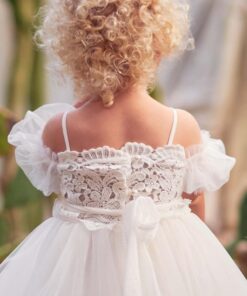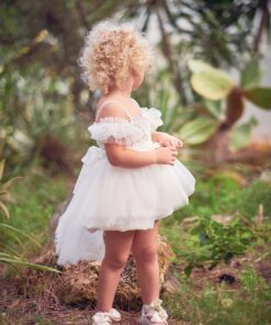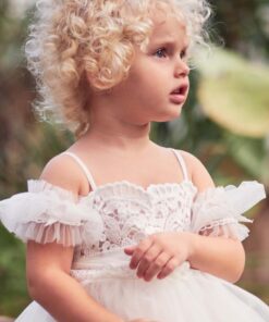Υπέροχο βρεφικό φόρεμα με ασύμμετρη φούστα και σατέν πουκάμισα από λεπτό τούλι διακοσμημένο με όμορφη δαντέλα Guipure. Η εσωτερική επένδυση είναι 100% βαμβάκι. Μια τέλεια επιλογή για όμορφες και αξέχαστες στιγμές. Το φόρεμα Raisa μπορεί να συνδυαστεί με ταιριαστά αξεσουάρ μαλλιών και παπούτσια από τη συλλογή “Designer’s Cat Shoes”. Μέγεθος: 1 – 3 χρόνια. Χρώμα: ελεφαντόδοντο.