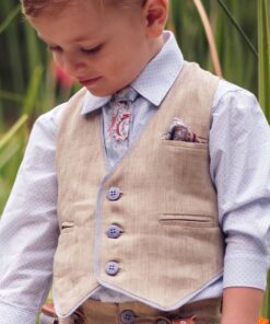 Trendy σύνολο από εξαιρετικής ποιότητας λινό (master of European linen) με παντελόνι και εκπληκτικό γιλέκο στο χρώμα της άμμου. Συνδυάζεται με δροσερό πουκάμισο 100% βαμβάκι. Το σετ αποτελείται από 7 τεμ. (παντελόνι, πουκάμισο,γιλέκο, διακοσμητικό μαντηλάκι, ασορτί τραγιάσκα, γραβάτα και τιράντες). Έναςανάλαφρος καλοκαιρινός συνδυασμός με φίνο γούστο και αίσθηση ελευθερίας. Μπορείνα συνδυαστεί άψογα με παπούτσια τύπου espadrille ή μποτάκια από την συλλογή “Designer’s Cat shoes”.