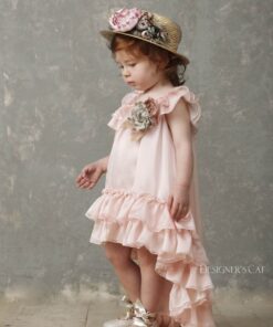 Εντυπωσιακό ασύμμετρο φόρεμα με βολάν, κοντό μπροστά και με ούρα πίσω, από μοναδικό μεταξωτό ύφασμα. Είναι διακοσμημένο με υπέροχα χειροποίητα λουλούδια σε vintage αποχρώσεις. Ένα υπέροχο σύνολο για εντυπωσιακές εμφανίσεις. Το φόρεμα Zea συνδυάζεται με extra αξεσουάρ για τα μαλλιά. Μπορεί επίσης να συνδυαστεί άψογα με αντίστοιχο μπολερό και παπούτσια της συλλογής “Designer’s Cat Shoes”.